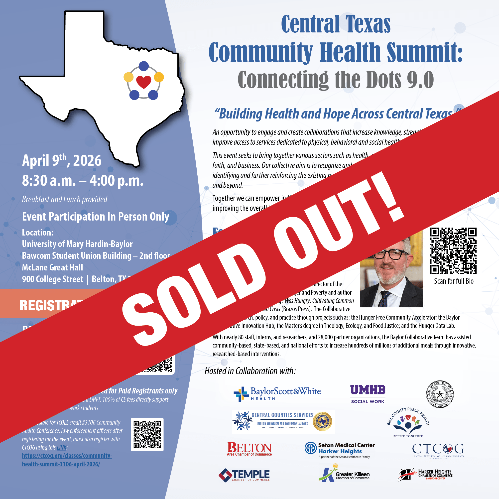 Hosted in collaboration with: University of Mary Hardin Baylor, Baylor Scott & White Health, Central Counties Services, Bell County, Central Texas Council of Governments, Bell County Public Health, Seton Medical Center Harker Heights, Belton Chamber of Commerce, Greater Killeen Chamber of Commerce, Harker Heights Chamber of Commerce, Temple Chamber of Commerce.